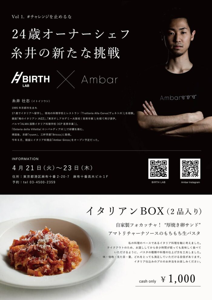 “Providing Free Space to Chefs in Crisis Due to the Novel Coronavirus”: Azabujuban Takagi Building BIRTH LAB
